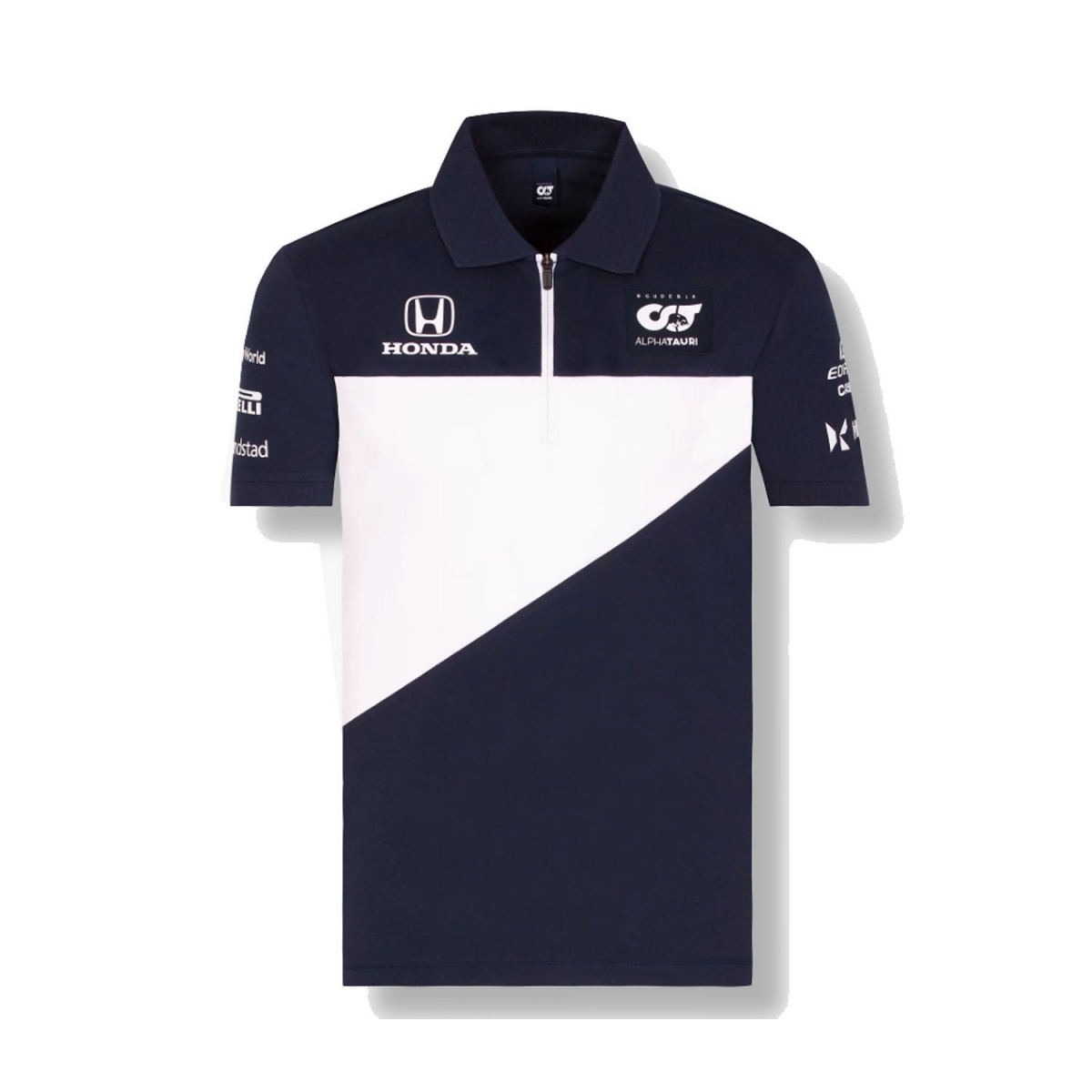 Logo Scuderia AlphaTauri i Honda na piersi