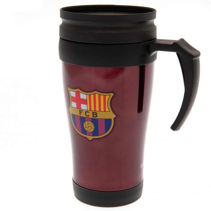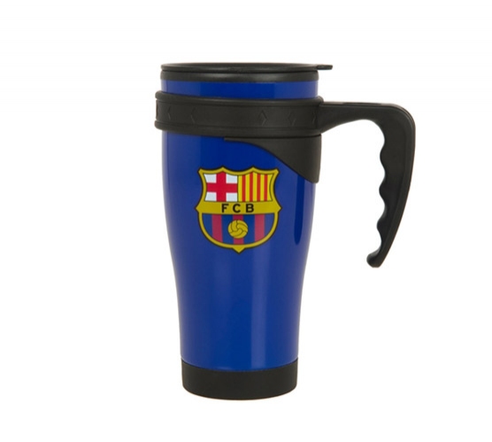 Praktyczny i elegancki niebeski termo kubek idealny do podróżowania z logo słynnego klubu futbolowego Barcelona. Część środkowa kubka wykonana jest ze stali nierdzewnej, natomiast część zewnętrzna jest z plastiku. Kubek posiada komorę powietrzną oraz 8,5 cm rączkę by można było wygodnie trzymać go w ręku nawet gdy w środku znajduje się gorący napój. Wieczko posiada praktyczny nieduży zamykany otwór przeznaczony do picia. Kubek jest doskonałym prezentem dla fanów klubu. Można korzystać z niego na meczu, a newet w drodze do pracy. Towary są sprzedawane za zgodą właścicieli praw licencyjnych. Produkt posiada oficjalną licencję.