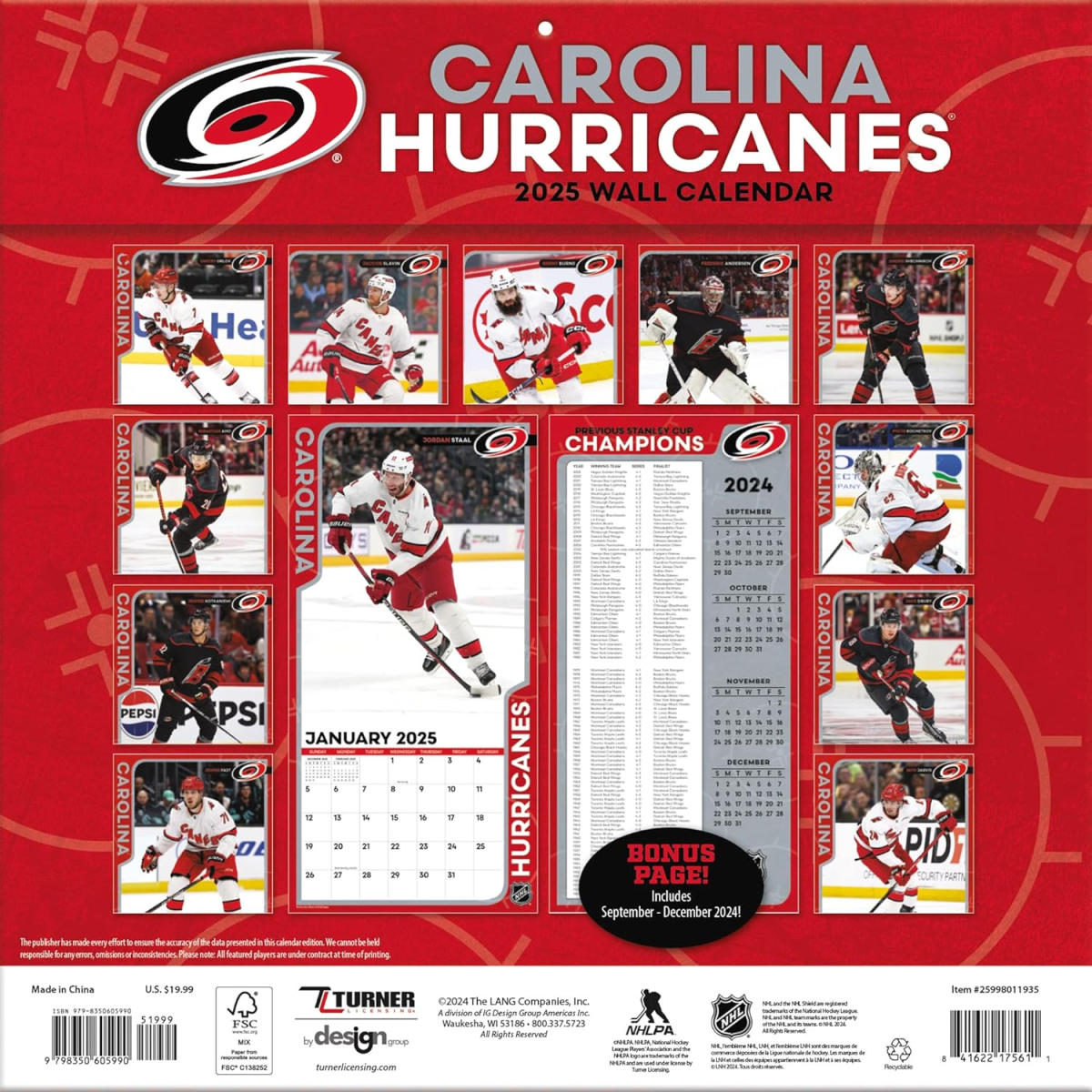 Carolina Hurricanes kalendarz 2025 Wall Calendar
