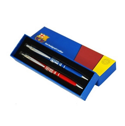 Dwa długopisy FCB w zestawie. Jeden granatowy, drugi czerwony. Każdy z logo Barcy. Pokaż, komu kibicujesz.