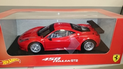 Wysokiej jakości model Ferrari 458 Italia GT2 firmy Hot Wheels. Skala 1:18, kolor czerwony.