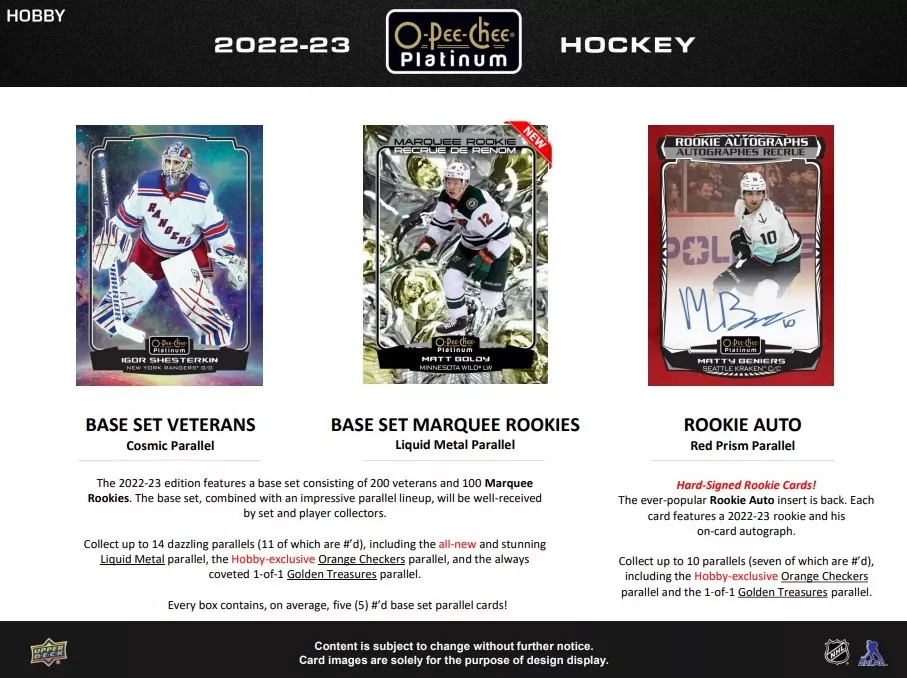 NHL pudełka karty hokejowe NHL 2022-23 Upper Deck O-Pee-Chee Platinum Hobby Box