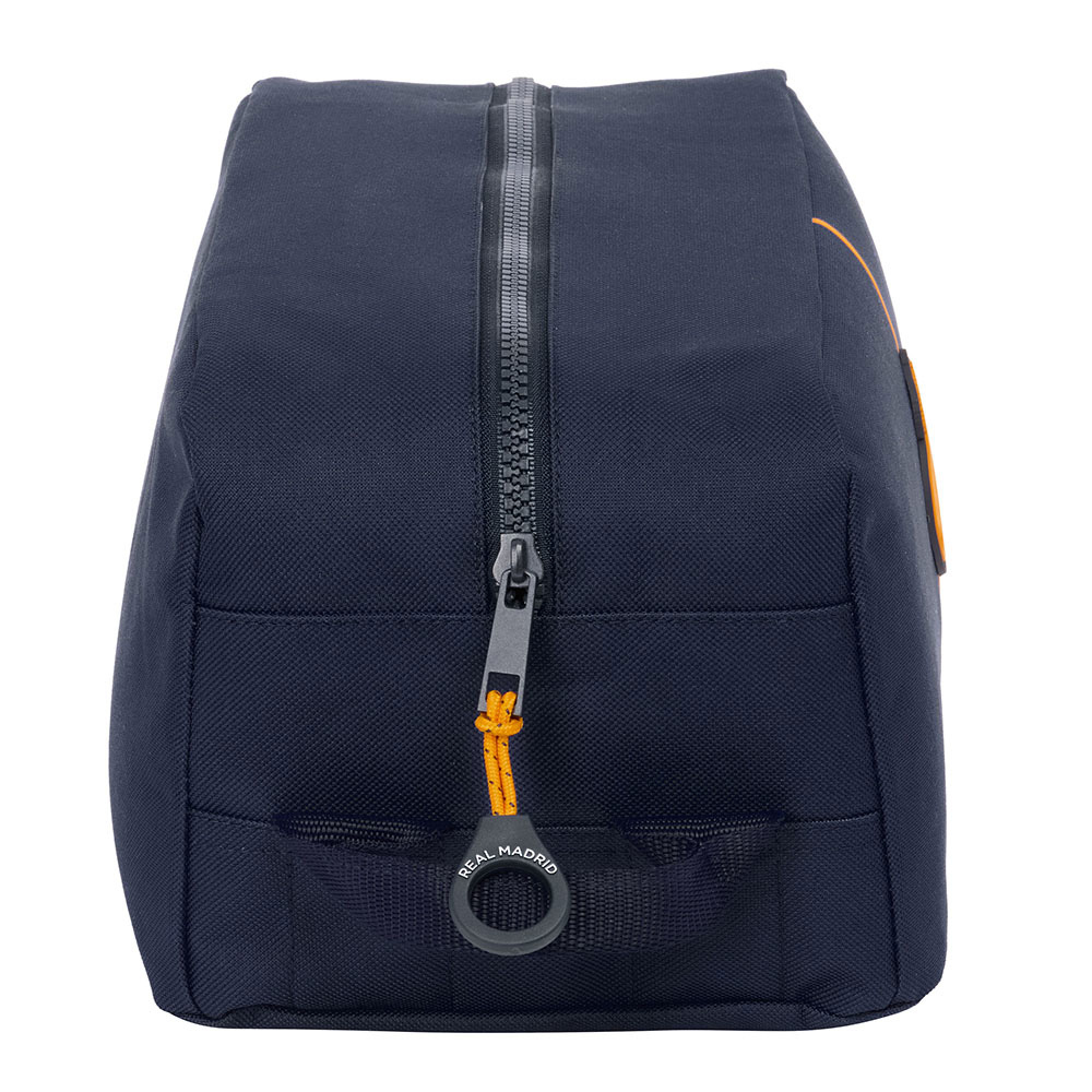 Pokaż swoją pasję do piłki nożnej z tą ciemnoniebieską torbą na korki z ikonicznym logo i napisem Real Madrid. Torba została zaprojektowana z myślą o prawdziwych fanach, którzy chcą przechowywać swój sprzęt sportowy w stylowy sposób. Pomarańczowe detale nadają nowoczesny wygląd, a praktyczne zapięcie na zamek zapewnia łatwe i bezpieczne przechowywanie korków. Idealna dla każdego kibica, który żyje piłką nożną!