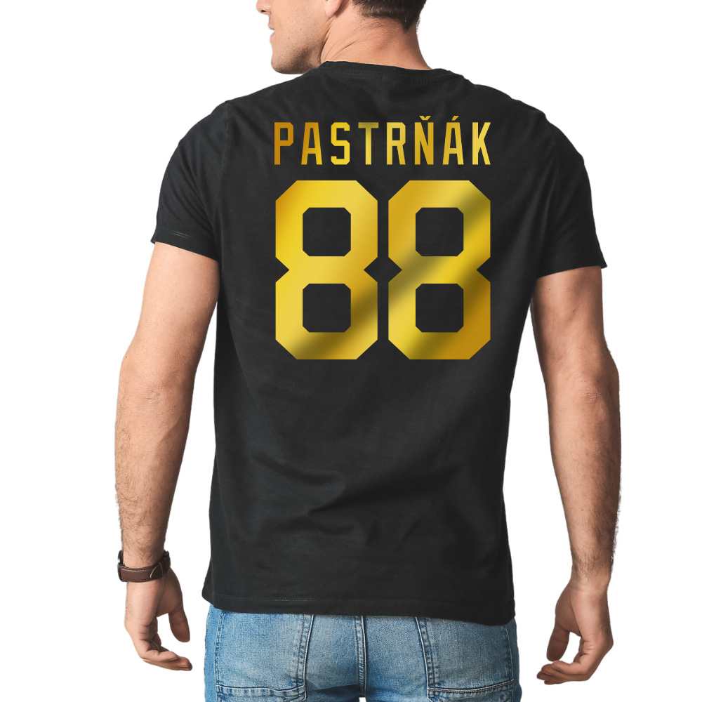- Design: Czarna koszulka z wyrazistym żółtym nadrukiem i napisem PASTRŇÁK na plecach. Pod napisem znajduje się numer 88, który nadaje koszulce osobisty wygląd.