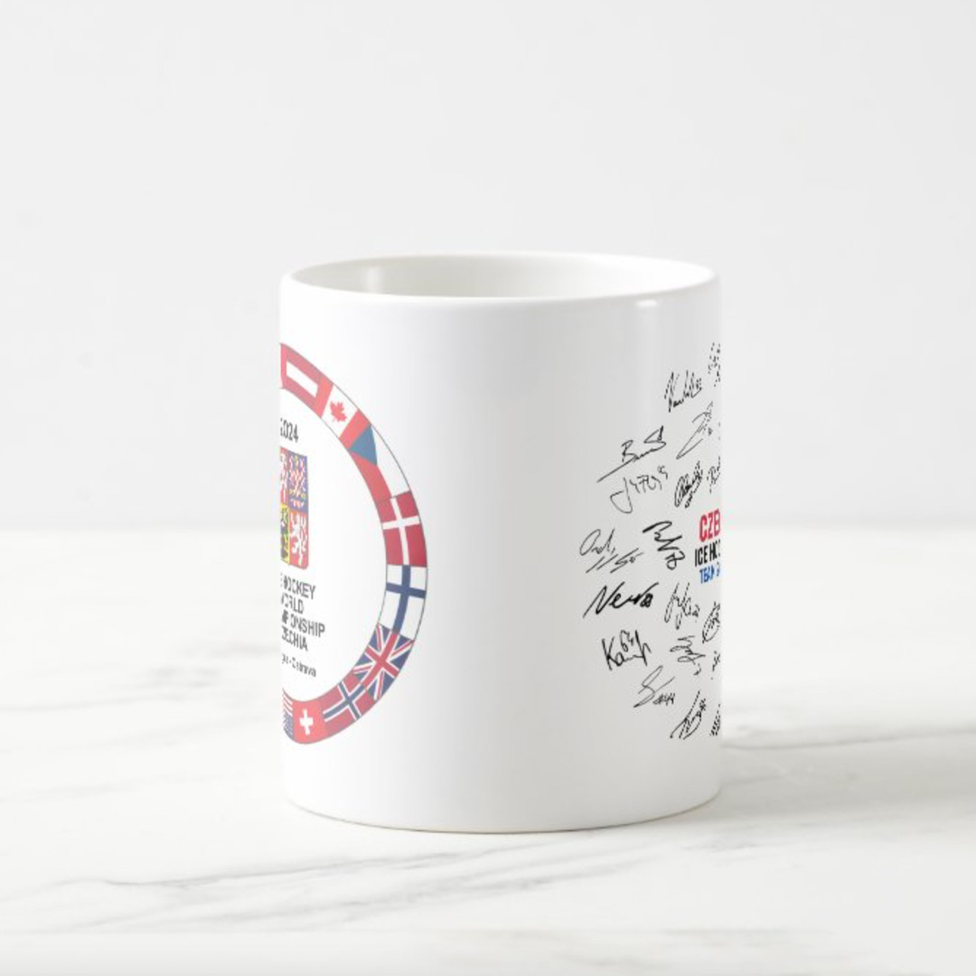 Fani sportu, uwaga! Przynosimy wam unikalny kubek z nadrukiem, który celebruje mistrzostwa świata w hokeju na lodzie 2024. Ten biały kubek nosi znak Czeskiego Związku Hokejowego oraz napis "ICE HOCKEY WORLD CHAMPIONSHIP CZECHIA 2024". Dodatkowo zawiera informacje o miejscach rozgrywek - Praga i Ostrawa. Wokół znaku i tekstu przedstawione są flagi różnych krajów uczestniczących w tym prestiżowym turnieju. Co czyni ten kubek naprawdę wyjątkowym, to podpisy członków czeskiej drużyny hokejowej na rok 2024. Świetny prezent lub kolekcjonerski przedmiot dla każdego miłośnika hokeja!