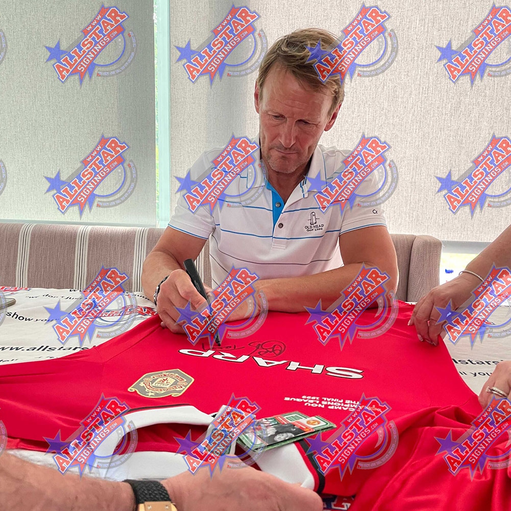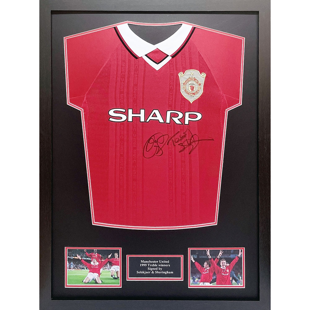 Słynni piłkarze koszulka w antyramie Manchester United 1999 Solskjaer & Sheringham Signed Shirt (Framed)