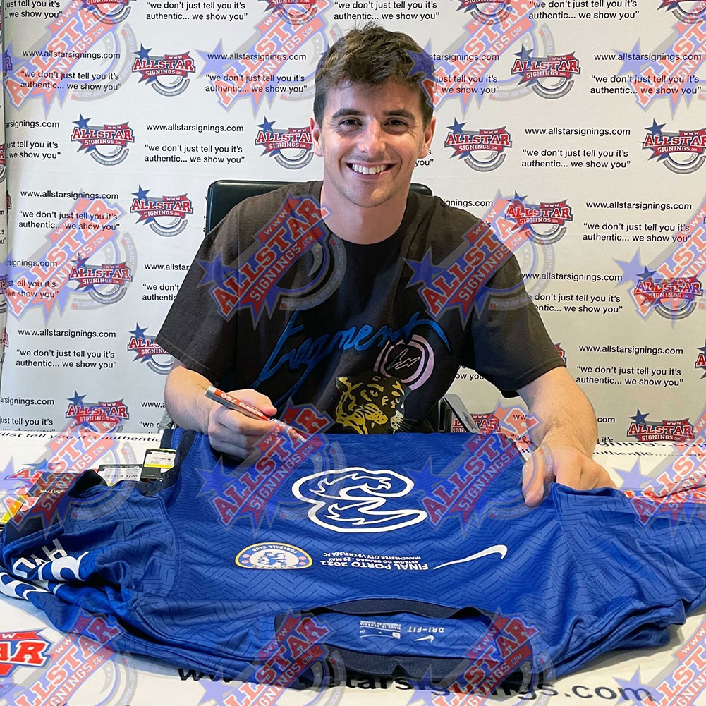 Słynni piłkarze piłkarska koszulka meczowa Chelsea FC 2021 Champions League Final Mount Signed Shirt