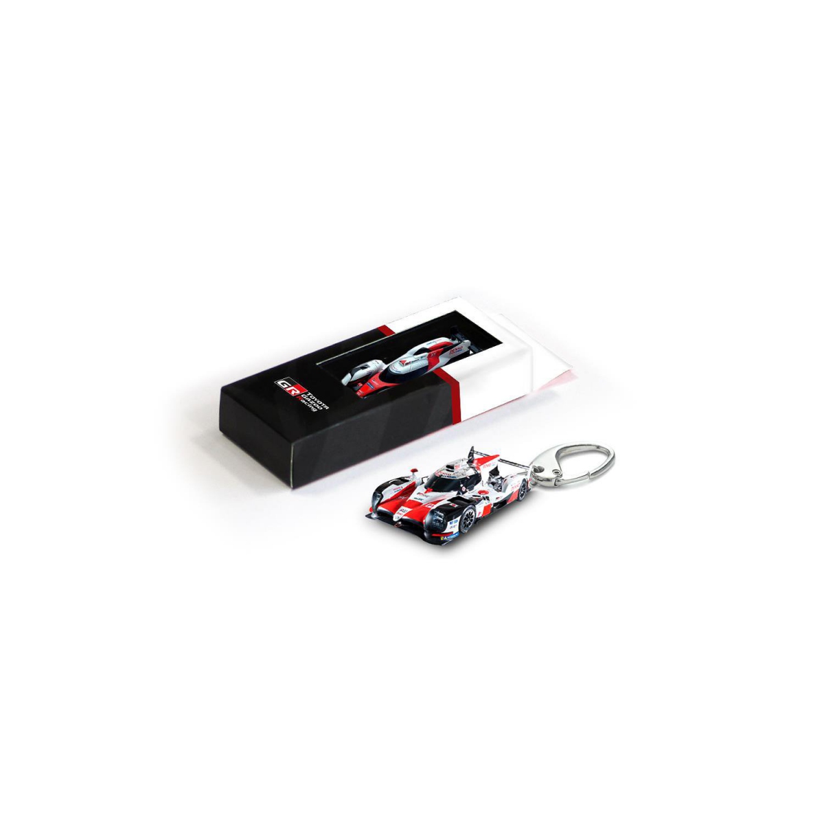 Stanowi połączenie solidnego metalowego zapięcia i miniaturki auta wyścigowego Toyota Hybrid TS050.